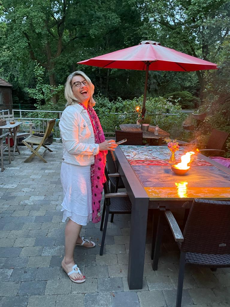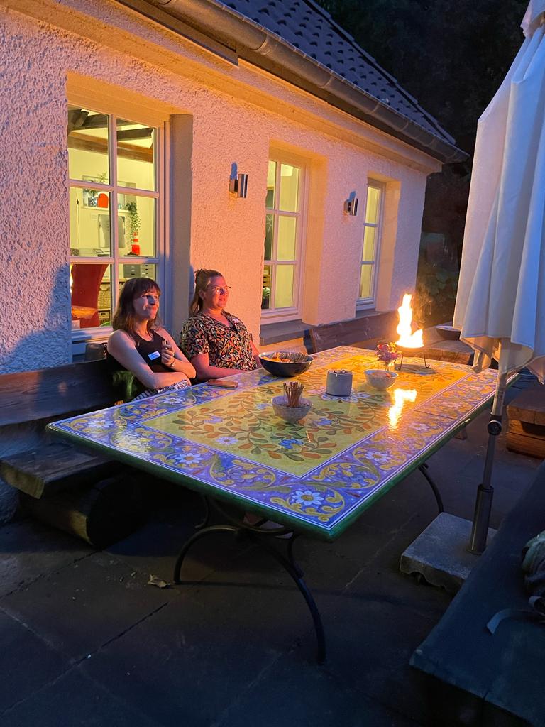 Gemütliches Ausklingen bei Gesprächen und Feuerschein im LAVIAhaus.