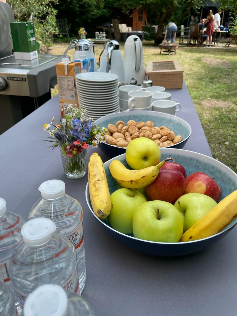 Steh-Café mit Getränken, Kaffee, Obst und Plätzchen